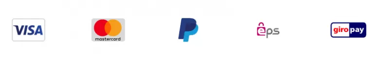 Wie Abfrage bezahlen Sie im Zuge der Bestellung sofort mittels einer dieser Bezahlformen: Visa, MasterCard, Paypal, EPS.