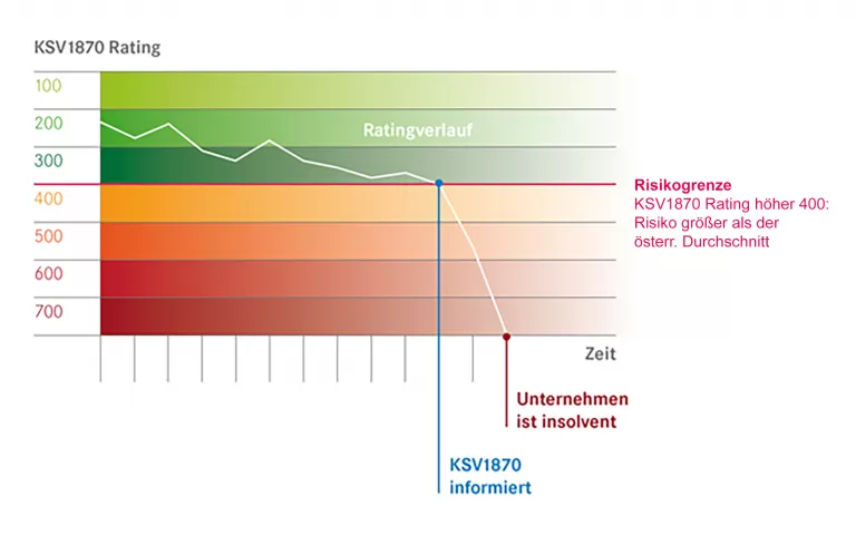 Bei 85 % aller Insolvenzen zeigt das Rating bereits 12 Monate vorher ein erhöhtes Risiko an.