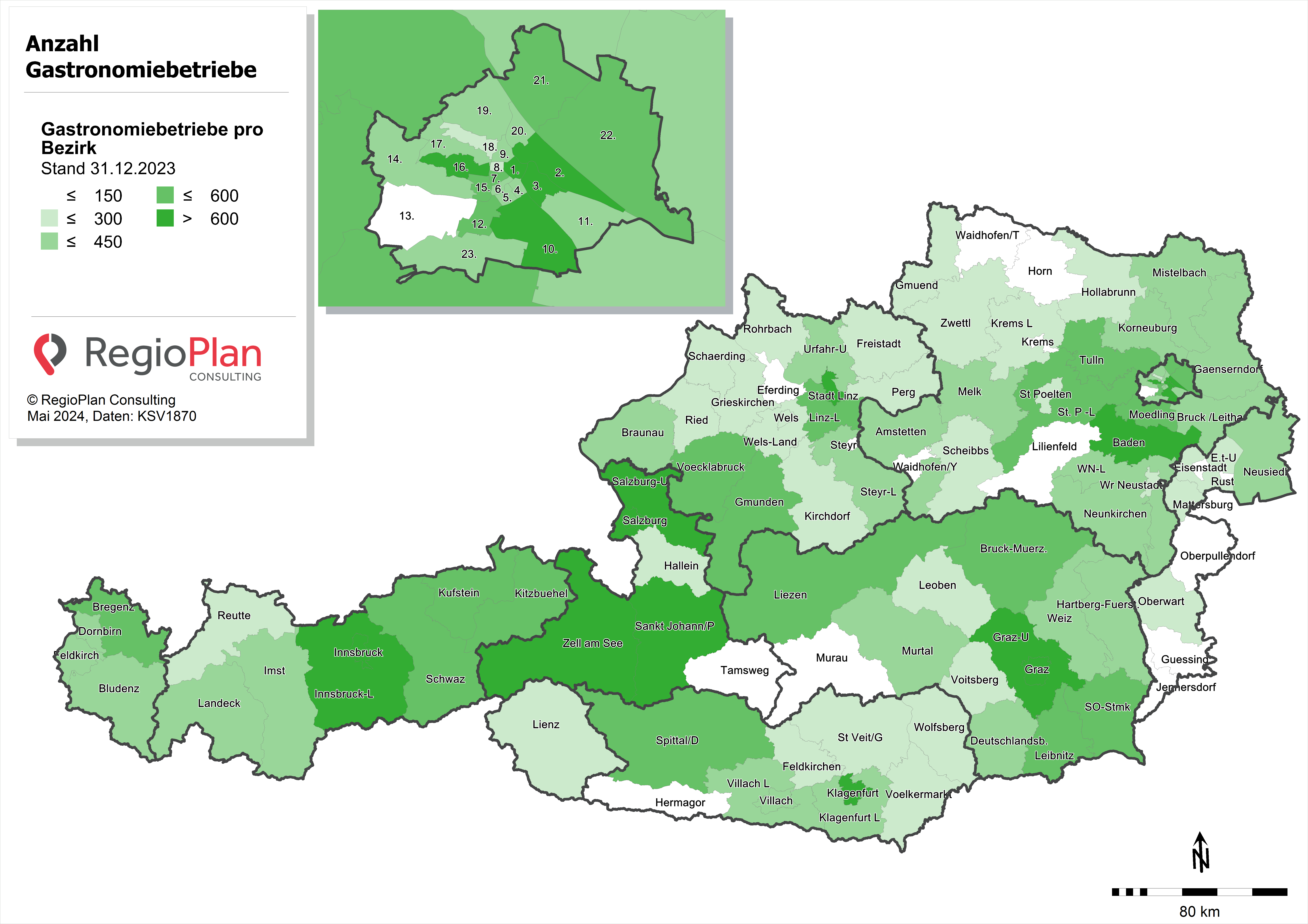 Zur Analyse: In einer gemeinsamen Standortanalyse haben KSV1870 und RegioPlan Consulting Österreichs Gastronomie einem Faktencheck unterzogen. Als Gastronomiebetrieb wurden Betriebe mit einem Mindestanteil von 40 % an gastronomischer Aktivität definiert. Darunter fallen unter anderem klassische Restaurants ebenso wie Hotelrestaurants oder Betriebe mit ausschließlich Straßenverkauf.