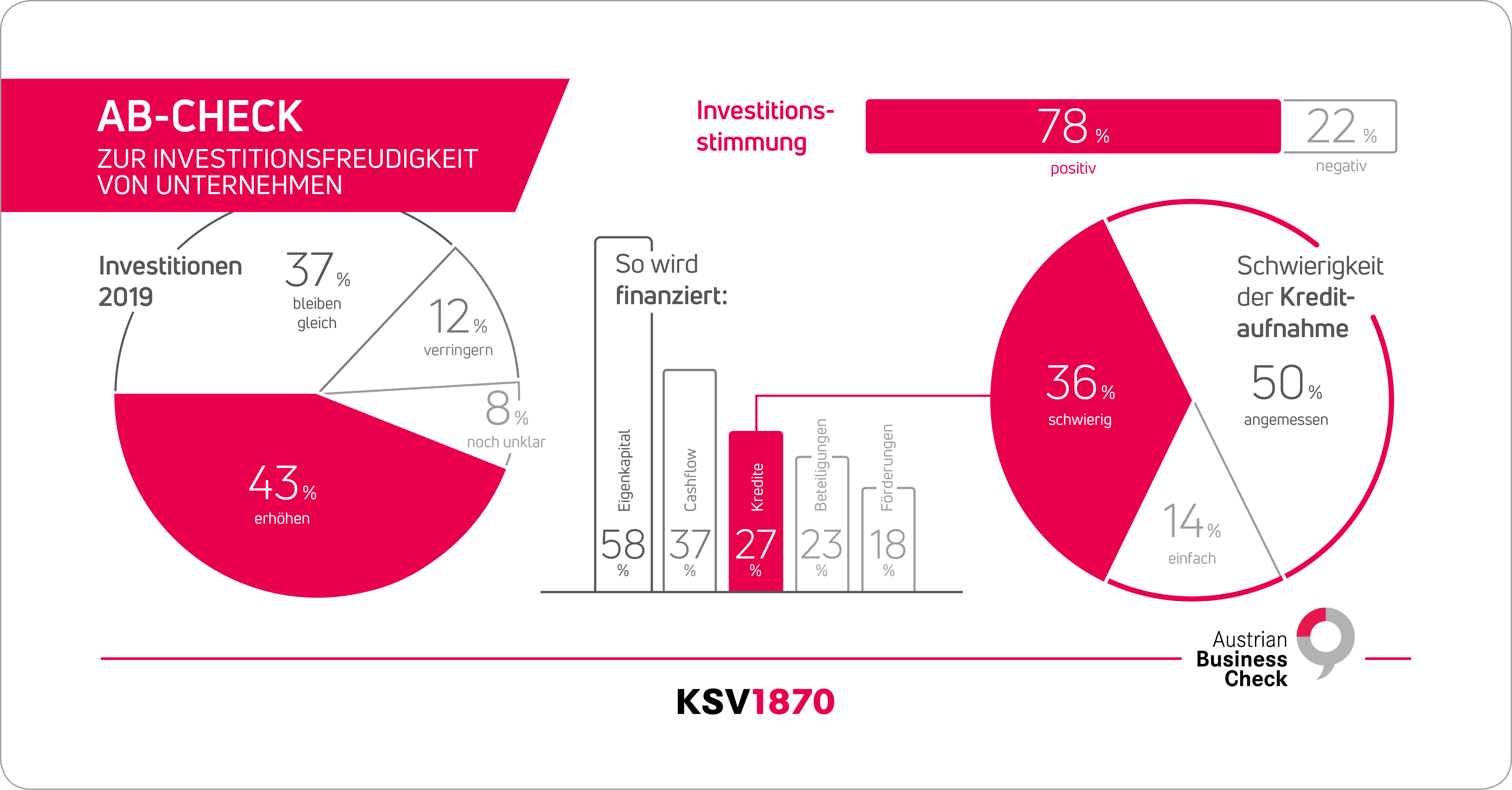 Austrian Business Check-Umfrage: 43 Prozent erhöhen ihre Investitionen gegenüber 2018.